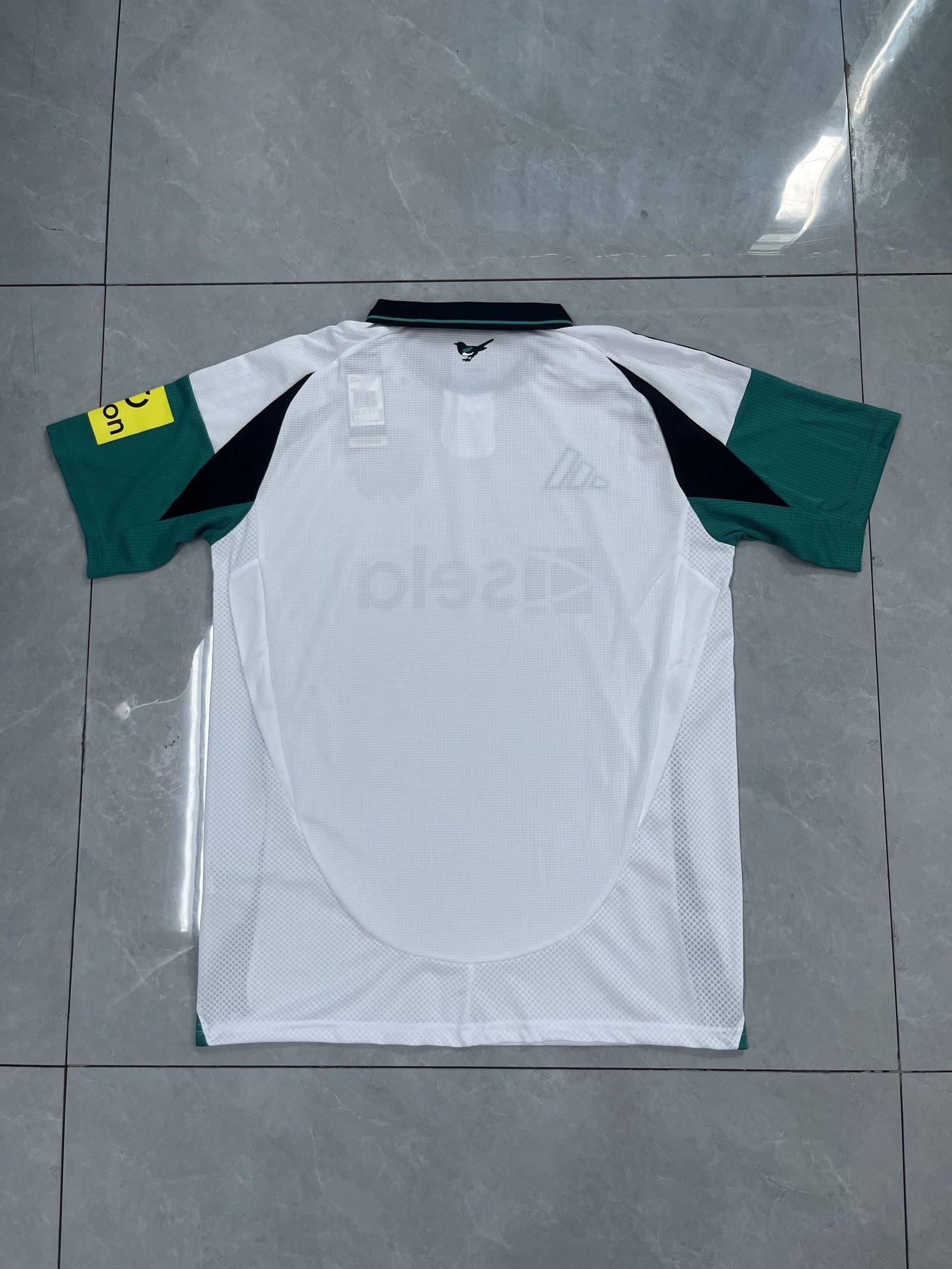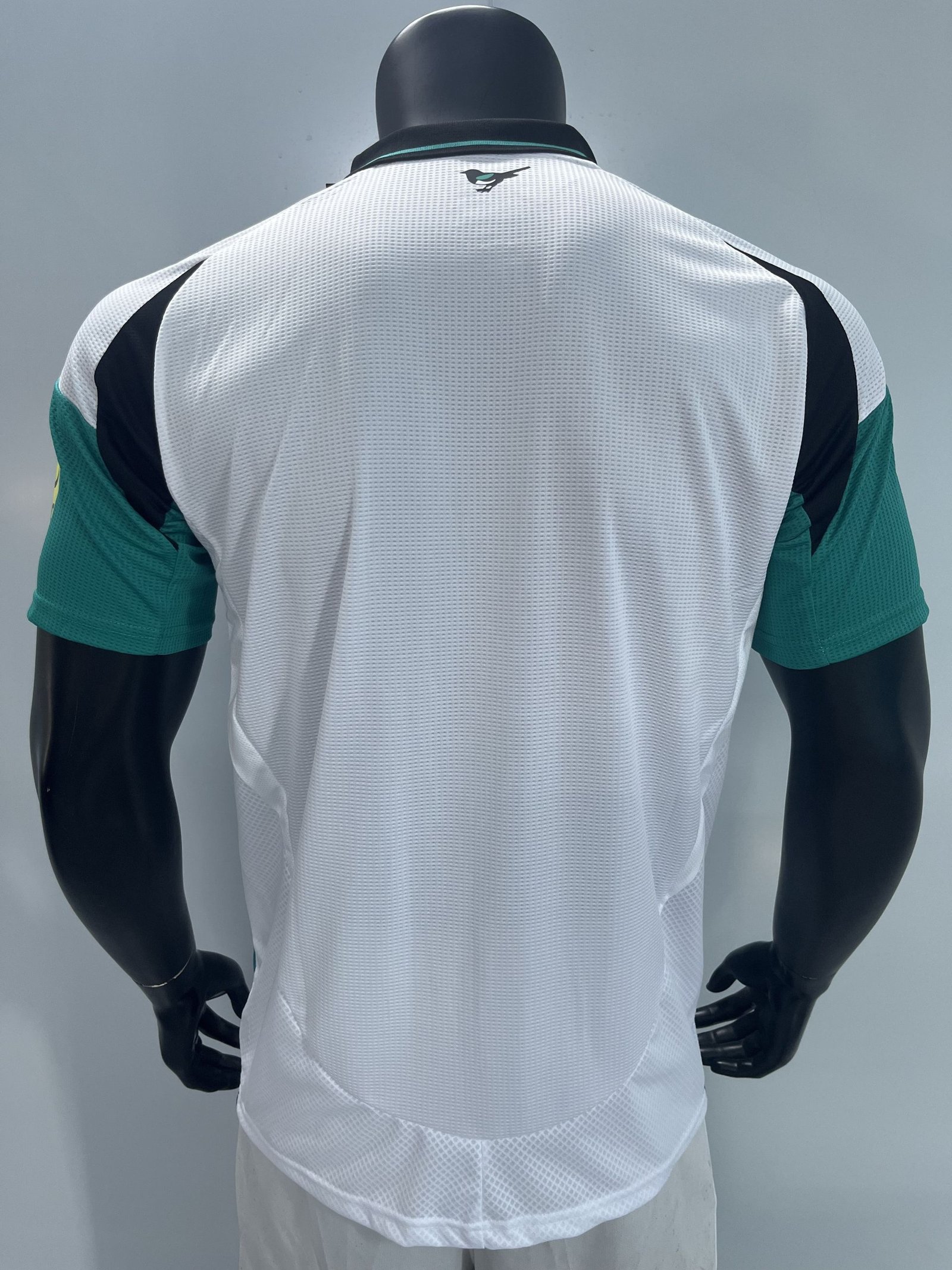 This is the official replica jersey for the Algerian national football team, known as The Fennecs. Most of the design is white, and green accents show off the national colors. The jersey uses modern technology to keep players and fans cool and dry. It’s great for both the pitch and everyday wear.