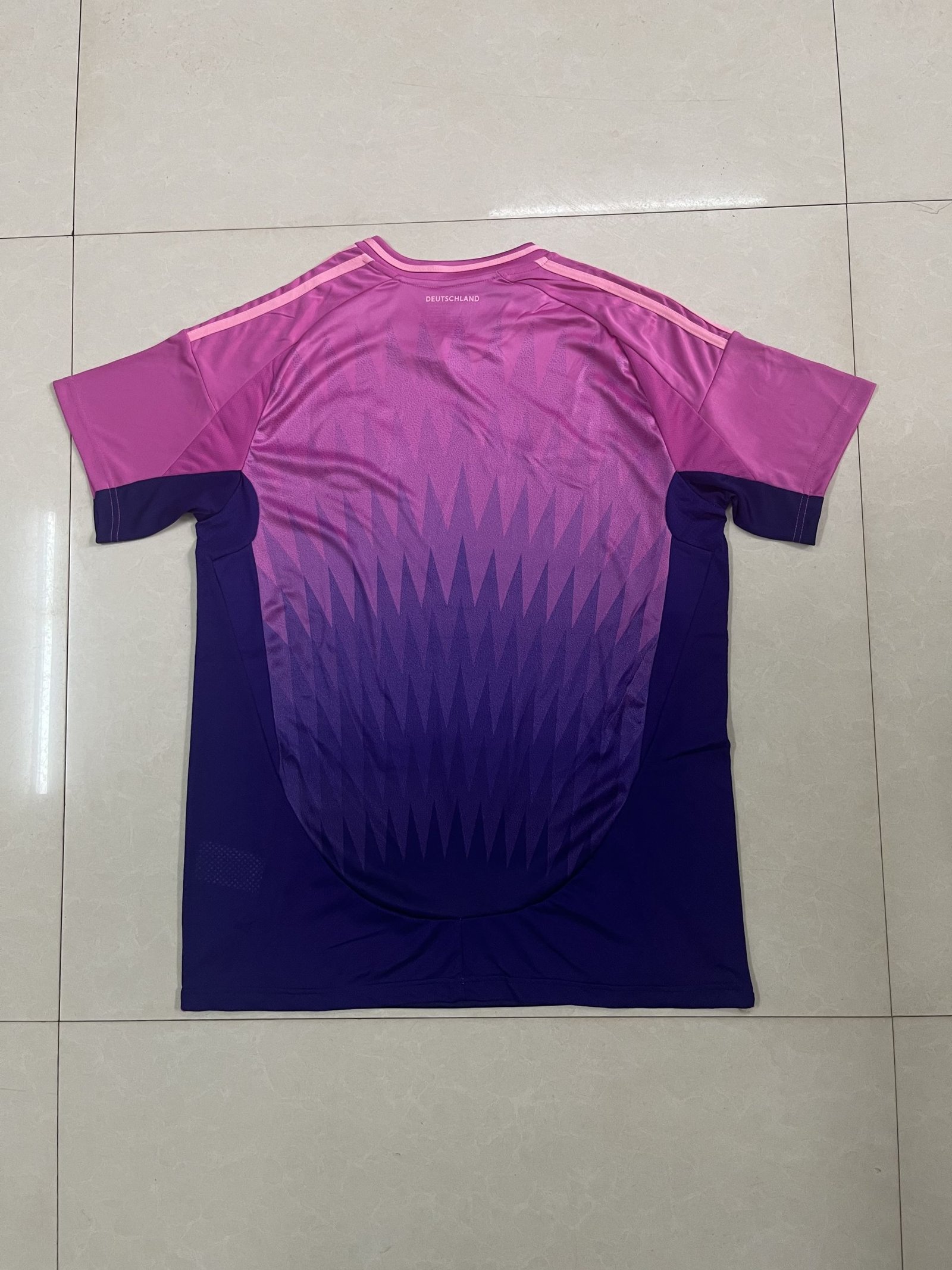 Germany has offered a daring away kit style. The jersey has a distinct ‘Fuchsia Fade’ look, transitioning from a vibrant pink color at the shoulders to a deep purple at the hem. This shirt has AEROREADY technology. It offers players and supporters the ultimate comfort in warm conditions. The DFB crest and the four stars remain the kit’s proudest highlights. A truly striking and modern piece of international football apparel.