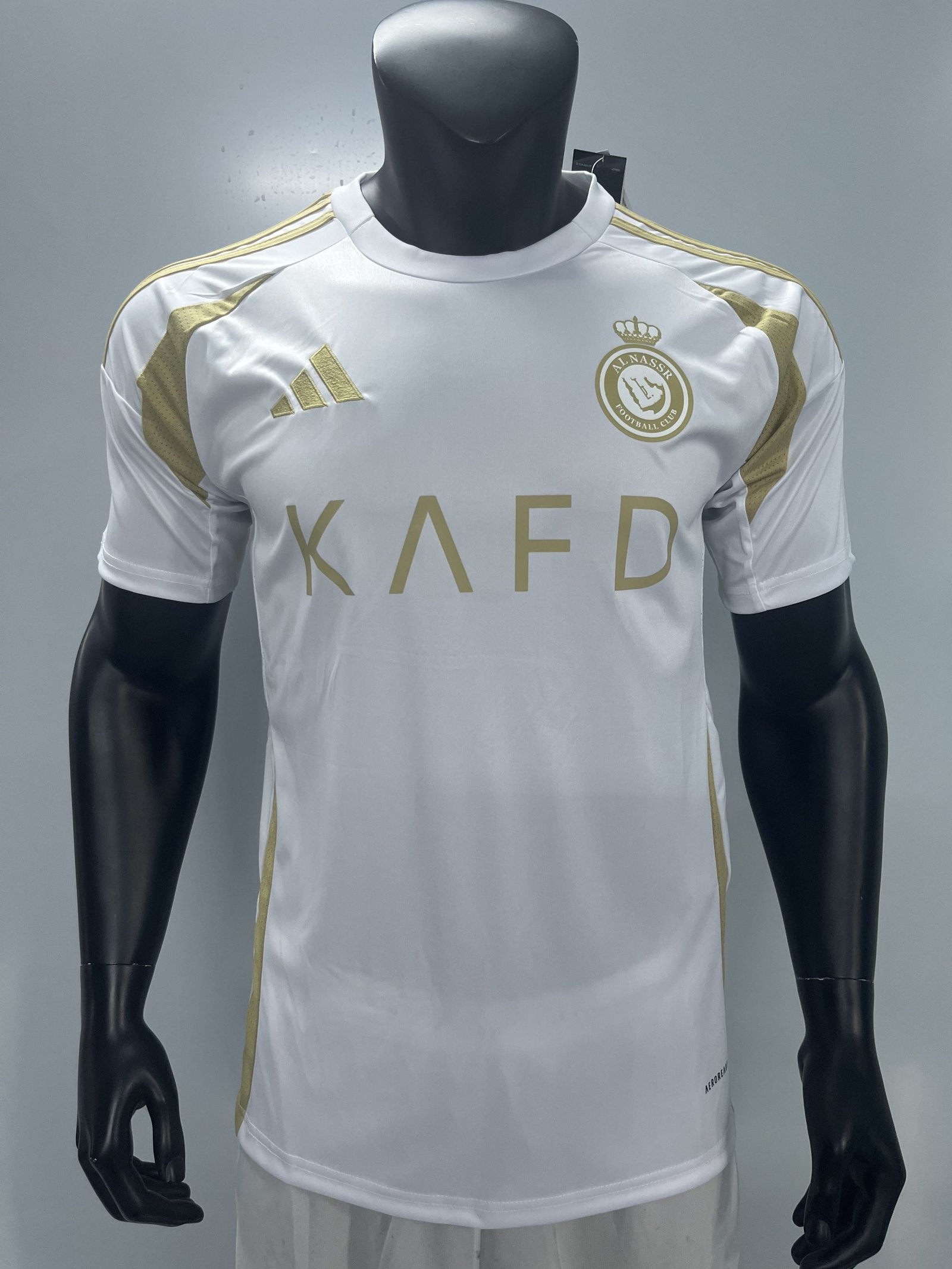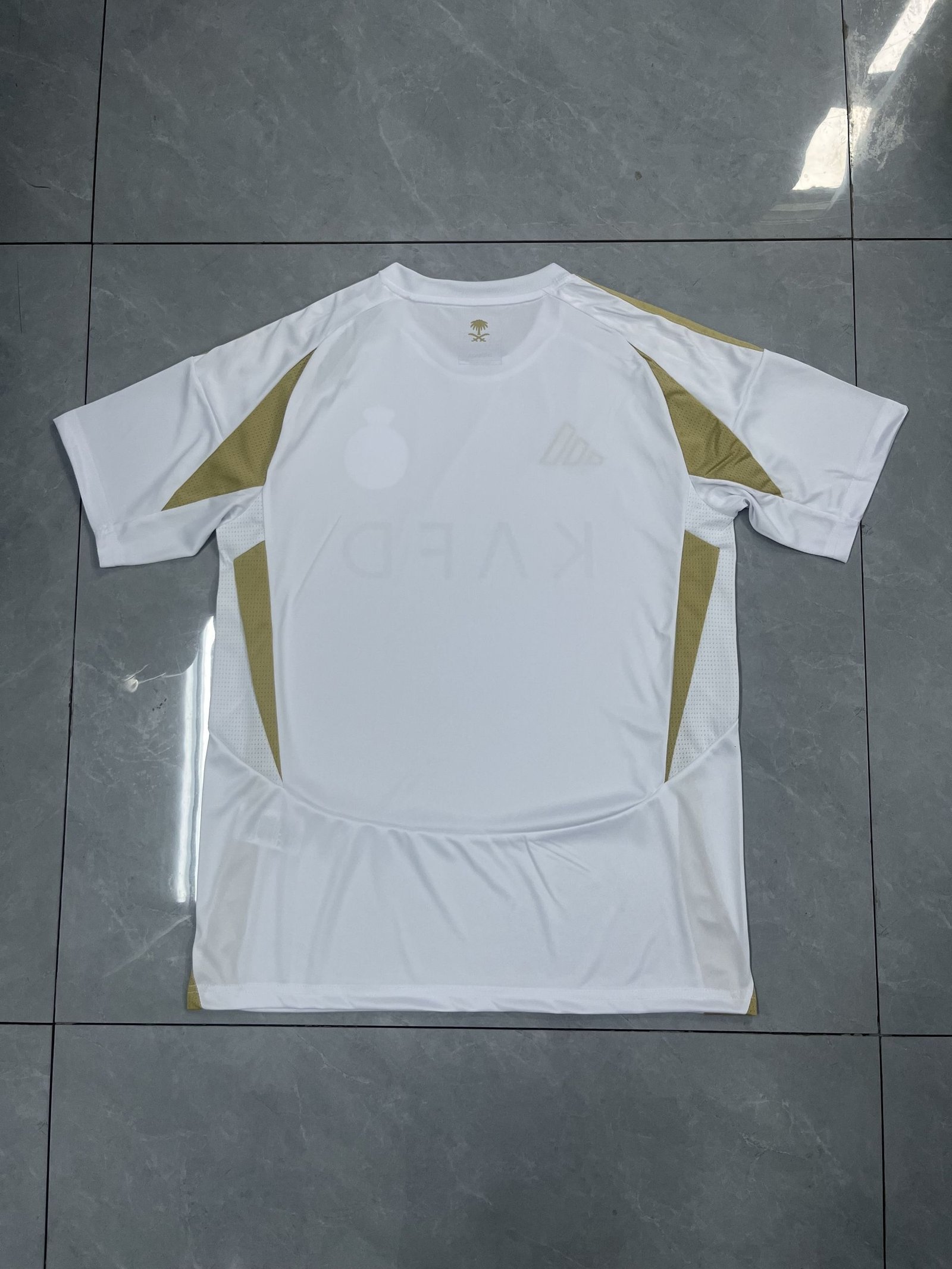 Logo: Embroidered Adidas logo (Gold), KAFD sponsor wordmark (Gold), and a gold-toned club crest